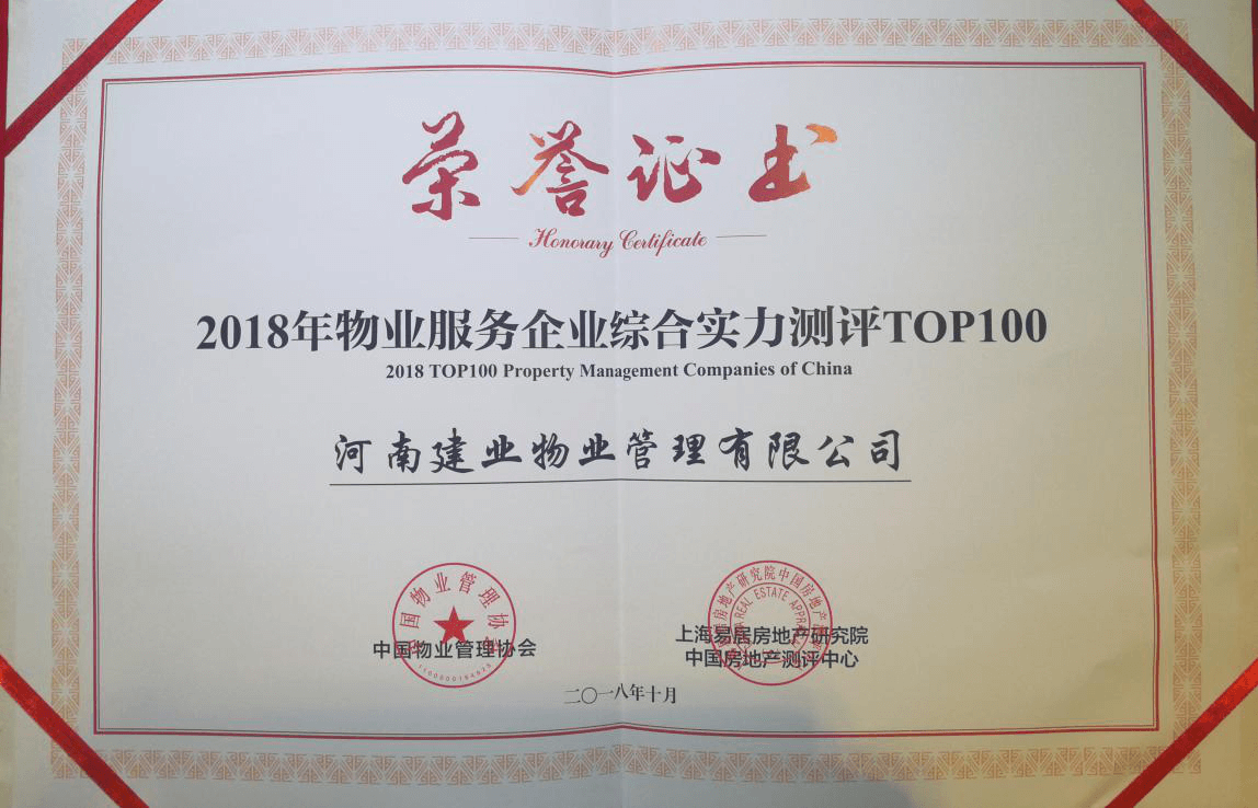 凭借雄厚的综合实力、强劲的发展势头和良好的业界口碑,建业物业荣登“物业服务企业综合实力TOP100榜单”15强,企业发展模式及业绩载入行业发展报告,品牌影响力持续扩大,企业竞争力备受肯定。